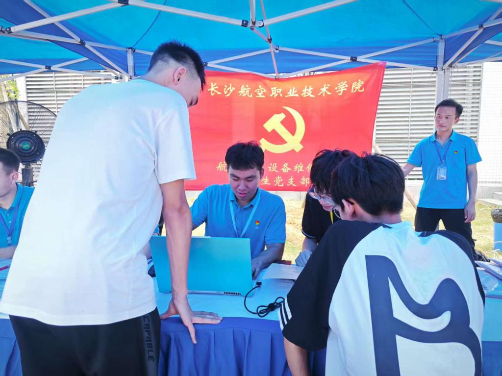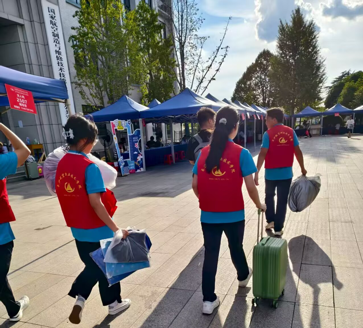 9 月 12 日清晨,长沙航院2025 级迎新通道准时开启。机电学院学生党支部 32 名学生党员身着“中国红”马甲、佩戴党徽,组建“党员先锋服务队”, 全程承担咨询、引导、材料核验、行李搬运等任务。